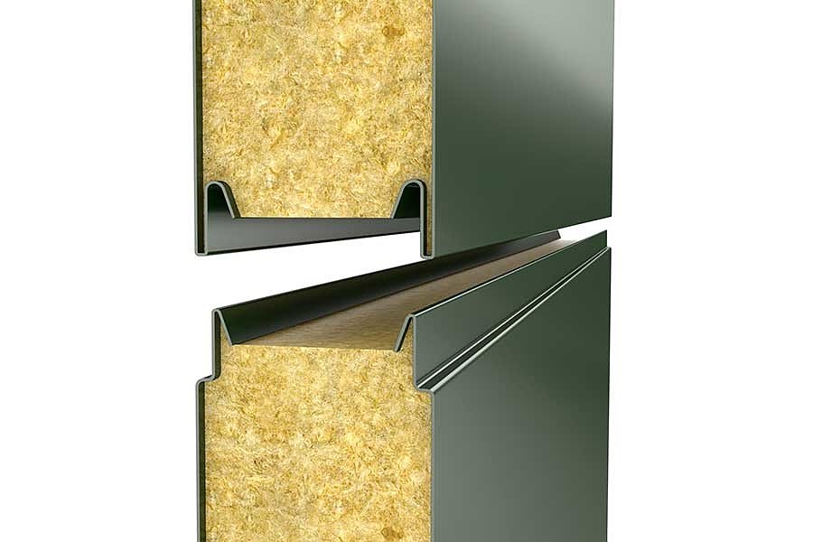 Сэндвич-панели – это трехслойная конструкция, внутри которой находится утеплитель. Такая конструкция по продольным кромкам оснащается замком, что значительно облегчает и ускоряет монтаж.